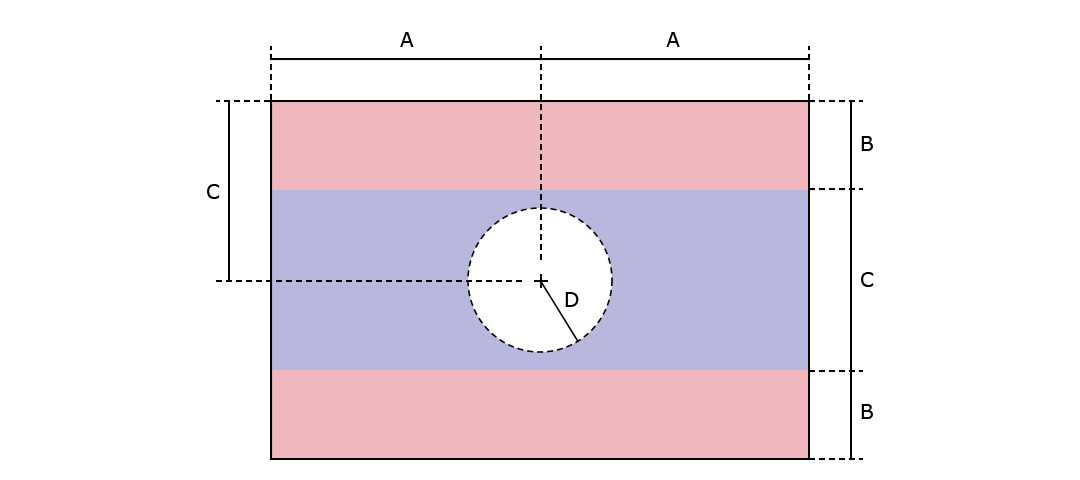 Three horizontal bands of red (top), blue (double width), and red with a large white disk centered in the blue band.