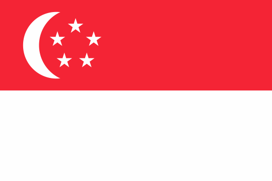 Two equal horizontal bands of red (top) and white; near the hoist side of the red band, there is a vertical, white crescent (closed portion is toward the hoist side) partially enclosing five white five-pointed stars arranged in a circle.