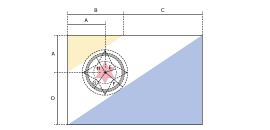 The flag of Bonaire has a large blue triangle in the lower right corner and a smaller yellow triangle in the upper left corner. The triangles are separated by a white strip, inside of which is a black compass and a red six-pointed star.