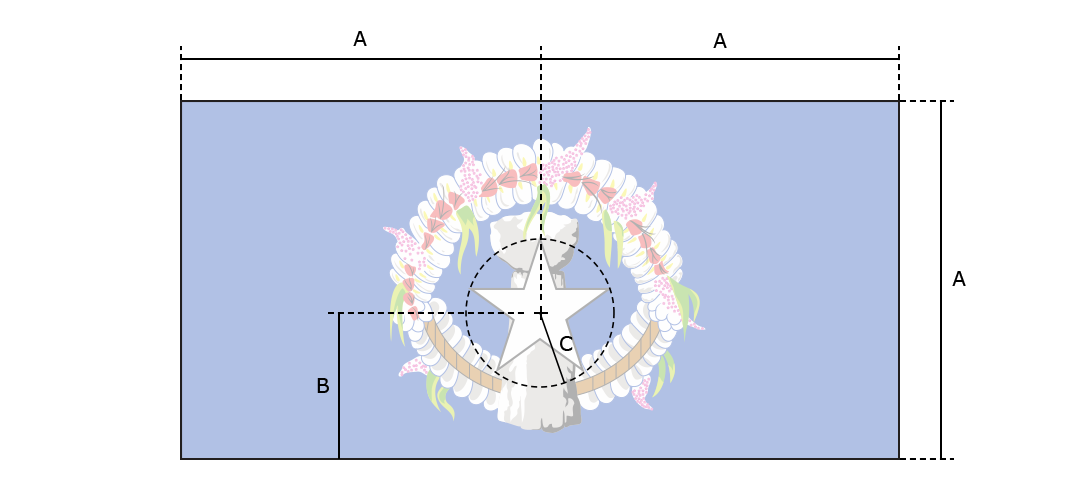 Blue, with a white, five-pointed star superimposed on the gray silhouette of a latte stone (a traditional foundation stone used in building) in the center, surrounded by a wreath.