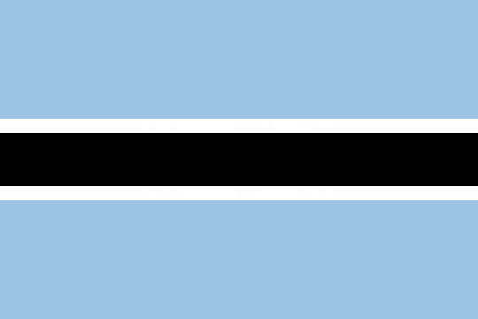 The flag of Botswana light blue with a horizontal white-edged black stripe in the center. The blue symbolizes the sky and reliance on water. The black and white represent the majority and minority of the country's population respectively.
