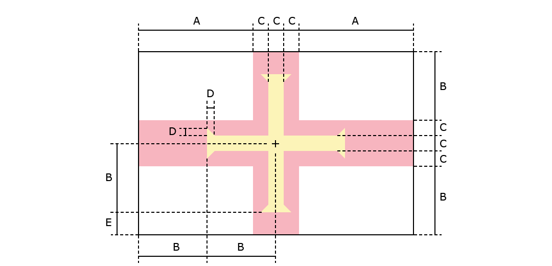 White with the red cross of Saint George (patron saint of England) extending to the edges of the flag and a yellow equal-armed cross of William the Conqueror superimposed on the Saint George cross.
