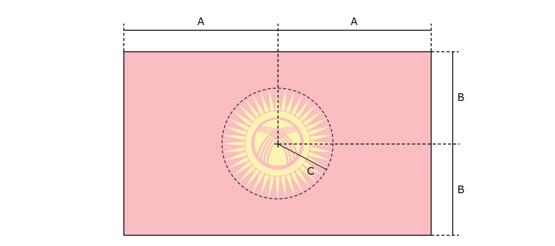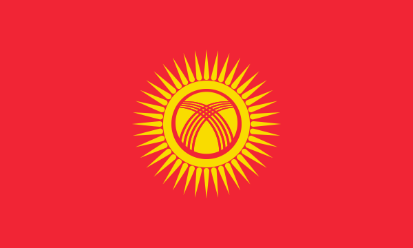 The flag has a red field with a yellow sun in the center having 40 rays representing the 40 Kyrgyz tribes. In the center of the sun is a red ring crossed by two sets of four lines, a stylized representation of the roof of the traditional Kyrgyz yurt. The red background of the flag symbolizes bravery, the son represents peace and wealth, and the tyundyuk - signifies fatherland and the universe in general.