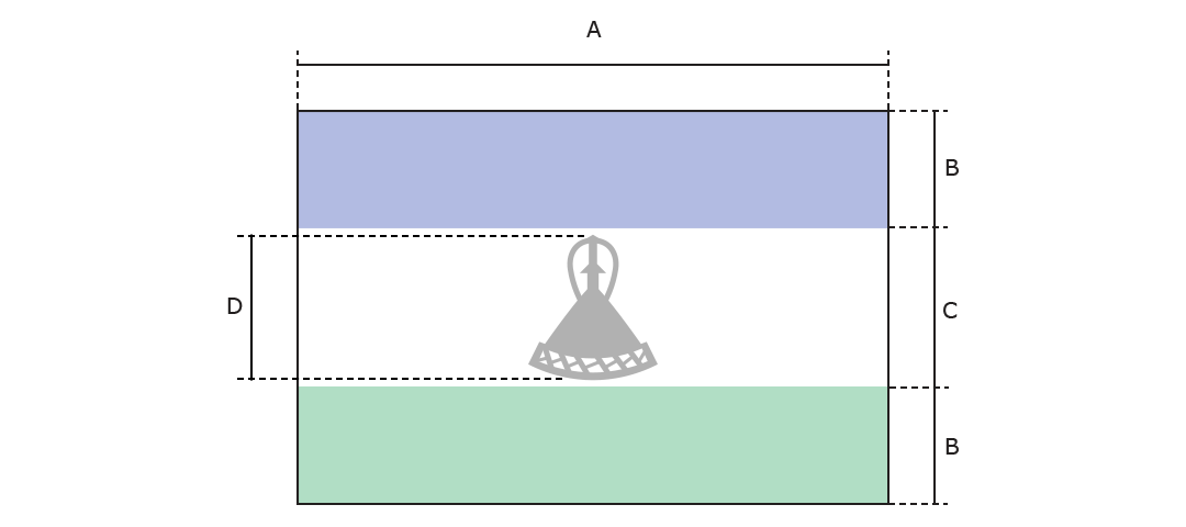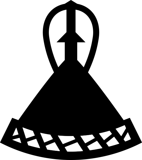Three horizontal stripes of blue (top), white, and green in the proportions of 3:4:3; the colors represent rain, peace, and prosperity respectively; centered in the white stripe is a black Basotho hat representing the indigenous people.