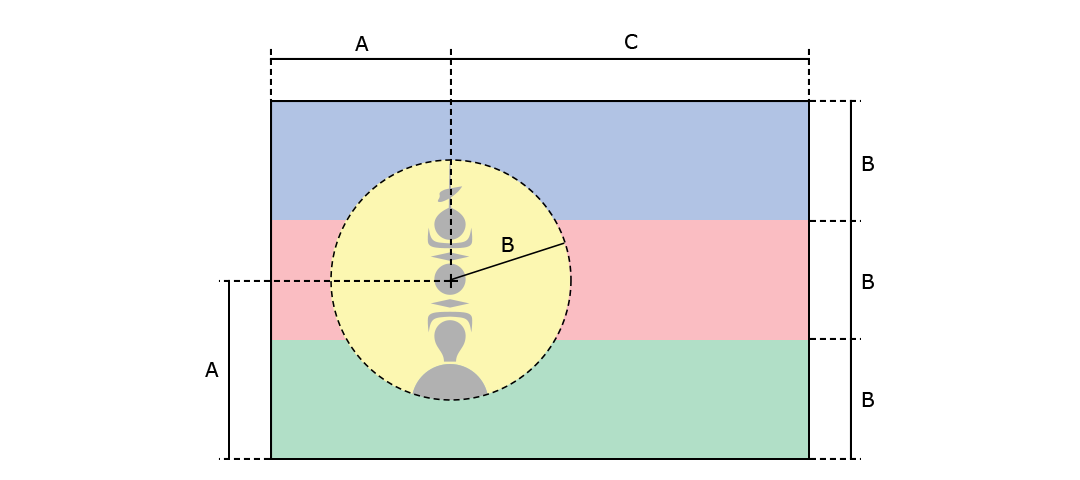 The local flag has three equal horizontal bands of blue (top), red, and green charged with a yellow disc at a position of one-third the width of the flag, measured from the hoist side. The