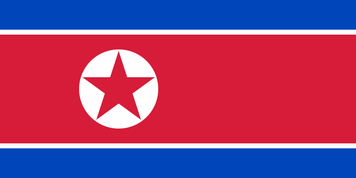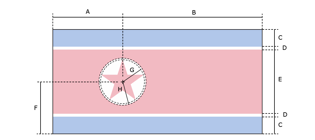 Three horizontal bands of blue (top), red (triple width), and blue; the red band is edged in white; on the hoist side of the red band is a white disk with a red five-pointed star.