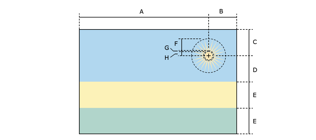 Three horizontal bands of sky blue (top, double width), yellow, and green, with a golden sun with 24 rays near the fly end of the blue band