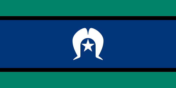 | Description: | Green represents the islands, blue the sea and black the local Melanesian people. A stylised dancer's head-dress known as a DARI and a five pointed star appear on the flag. The star alludes to the five main island zones and is sometimes interpreted as a symbol of the "Coming of the Light" - Christianity.