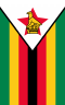 Seven equal horizontal bands of green, yellow, red, black, red, yellow, and green with a white isosceles triangle edged in black with its base on the hoist side; a yellow Zimbabwe bird representing the long history of the country is superimposed on a red five-pointed star in the center of the triangle, which symbolizes peace; green symbolizes agriculture, yellow - mineral wealth, red - blood shed to achieve independence, and black stands for the native people.
